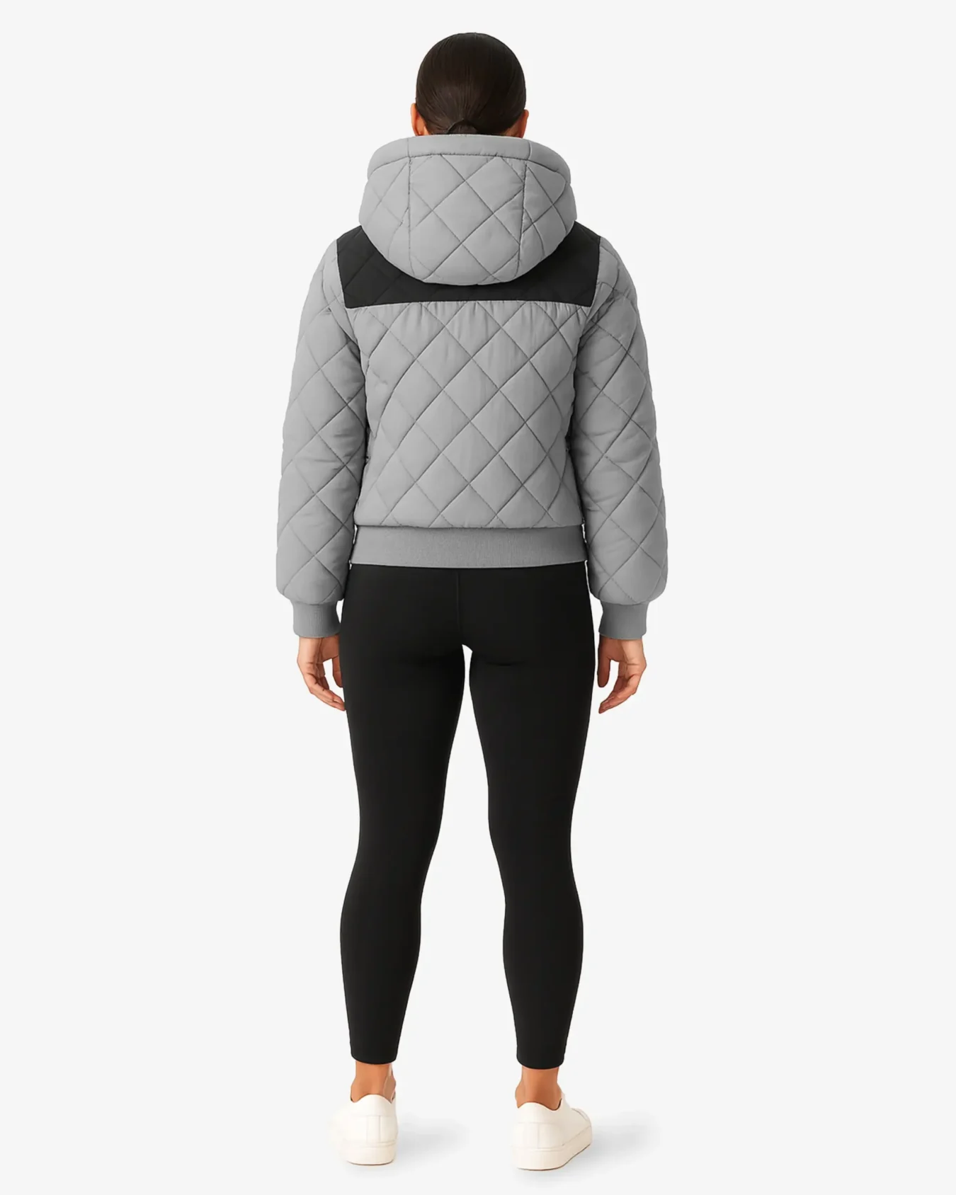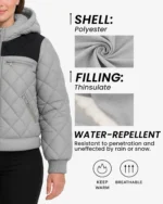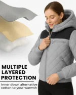 Quilted puffer design with hood for warmth and comfort