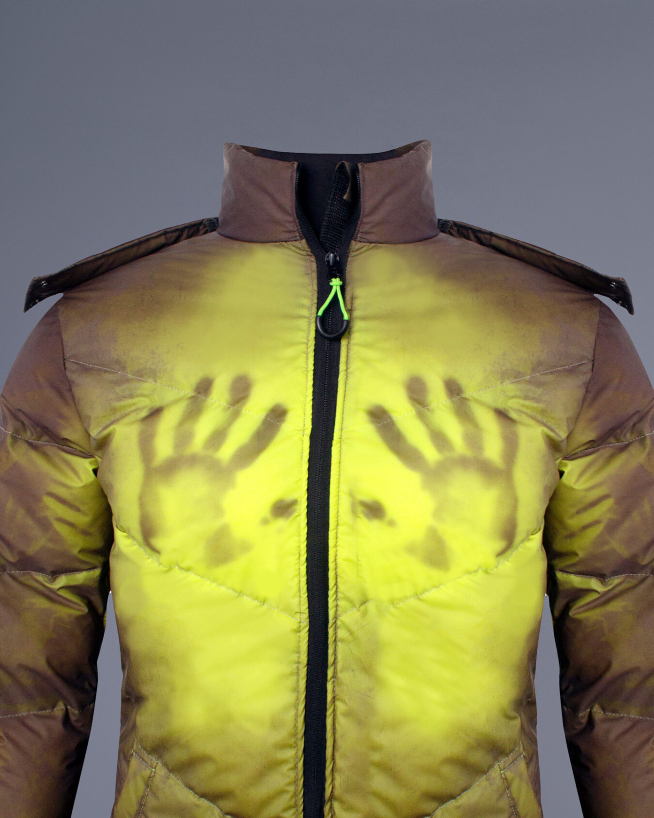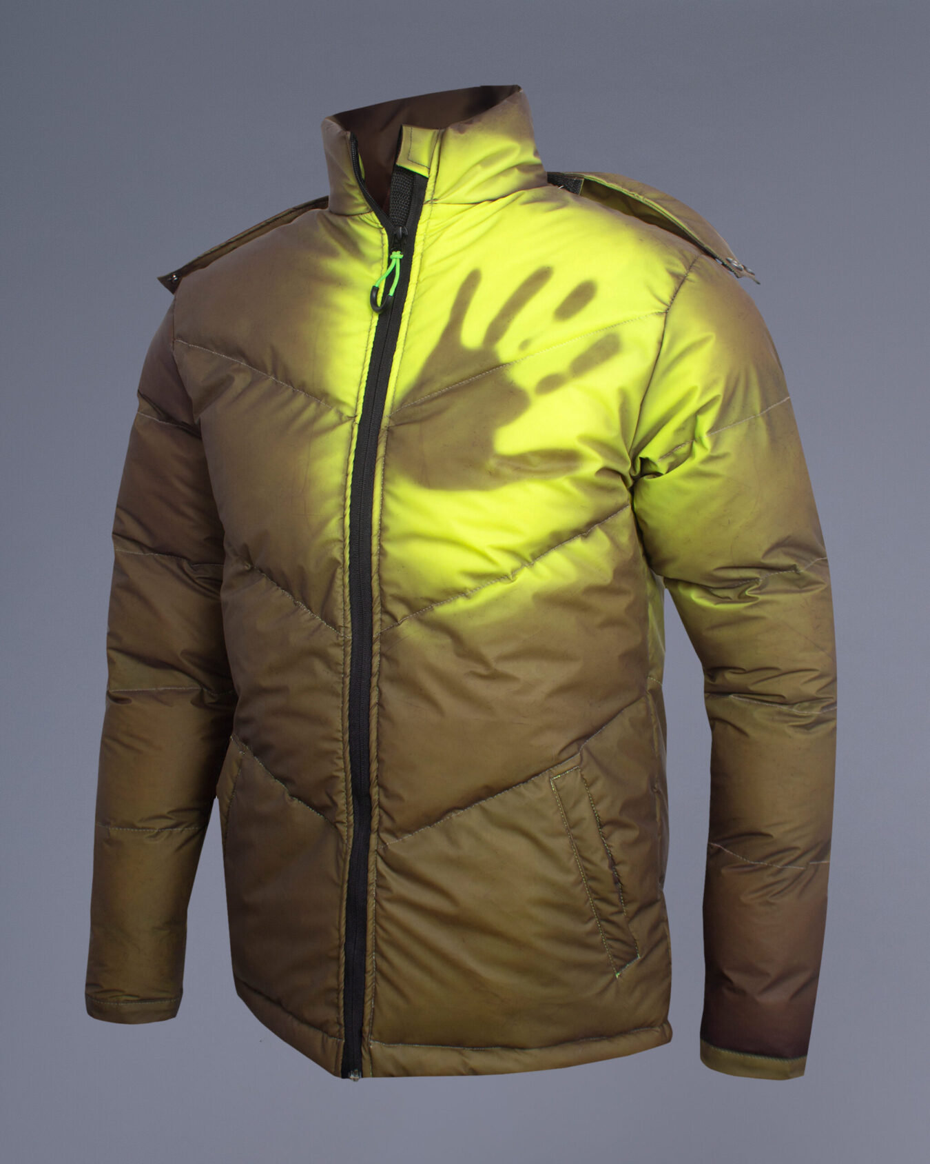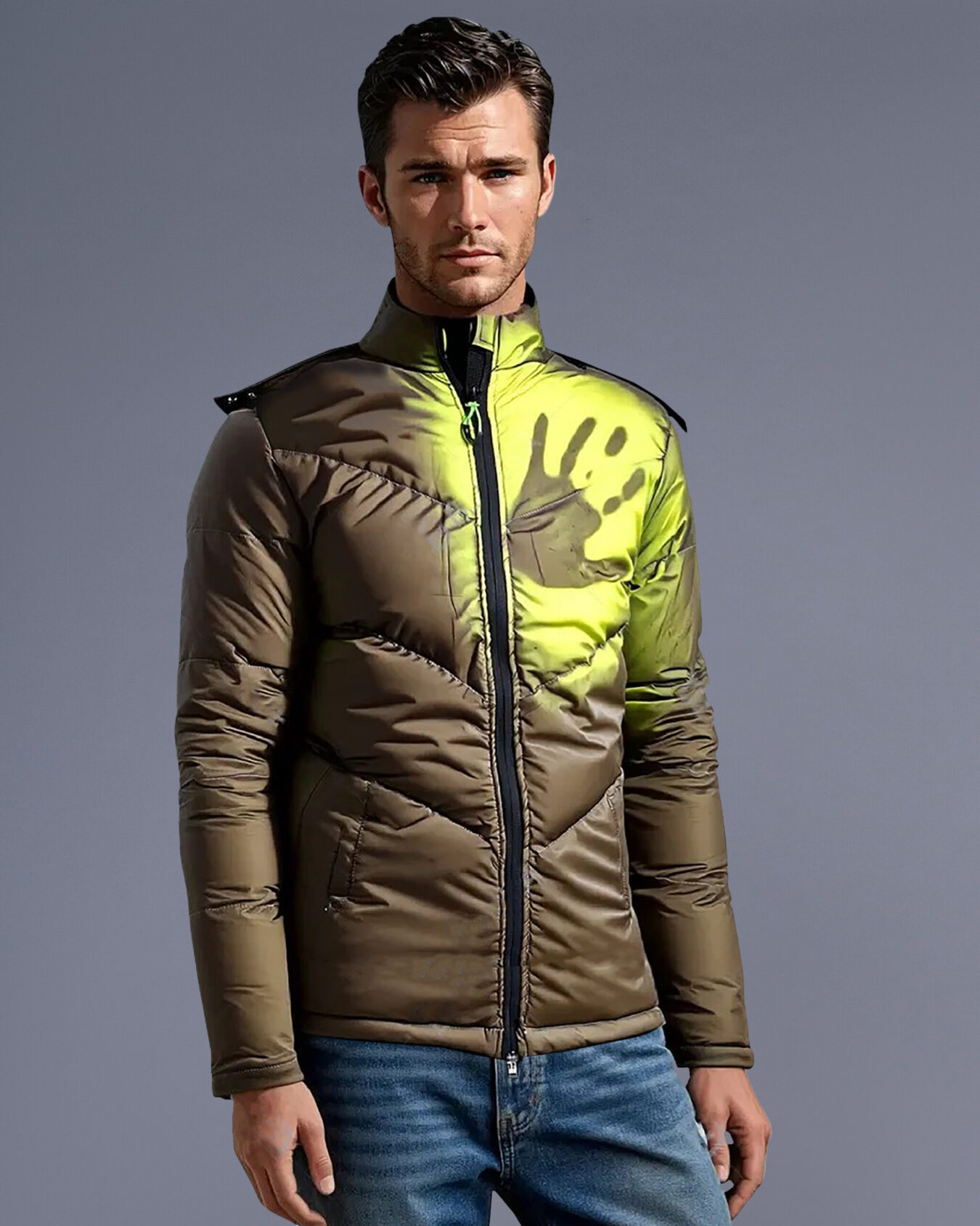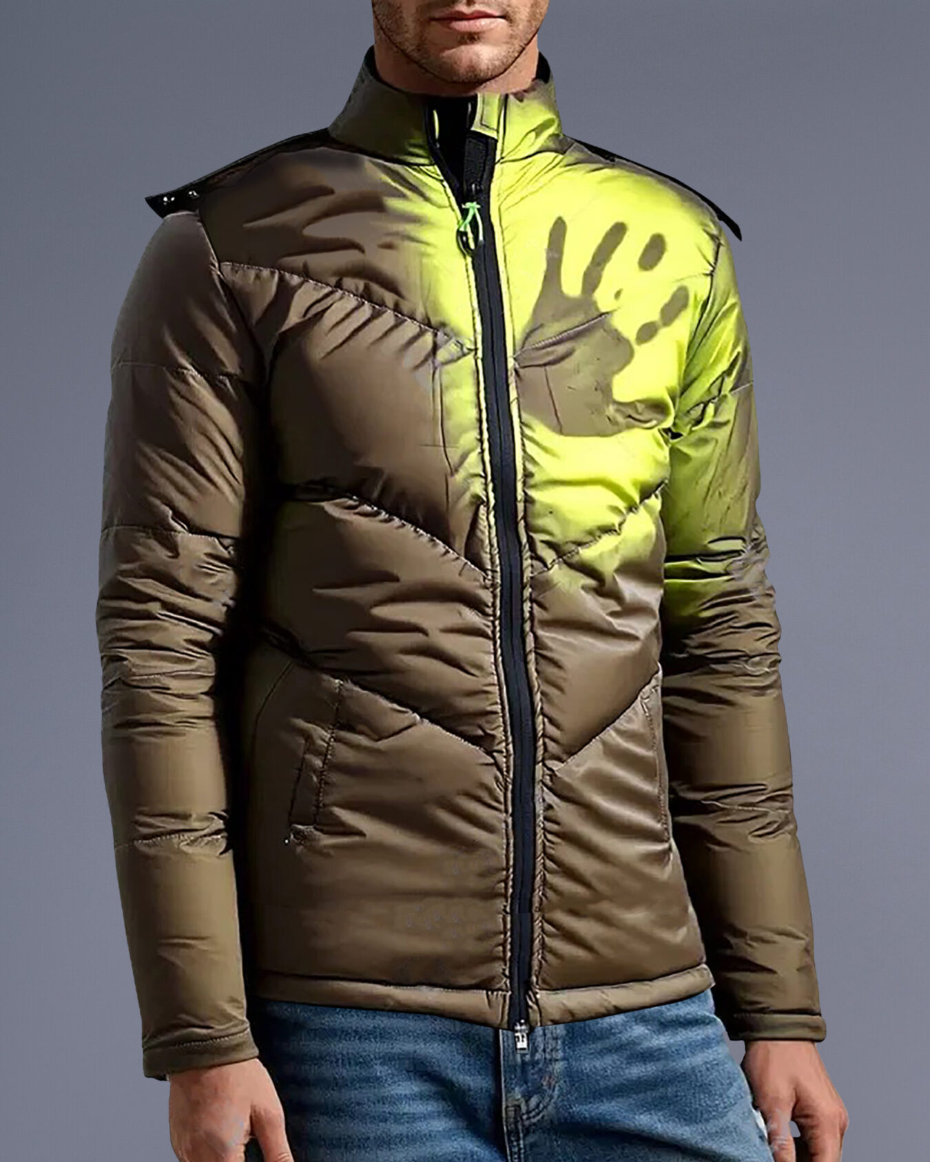 Revolutionize your winter wardrobe with our groundbreaking Chameleon Heat Reactive Puffer Jacket, a perfect fusion of innovation and practical winter wear. This state-of-the-art men’s jacket showcases advanced thermal-sensitive technology that responds dynamically to temperature changes, creating an interactive and visually striking appearance that transitions from deep brown to vibrant neon yellow.
