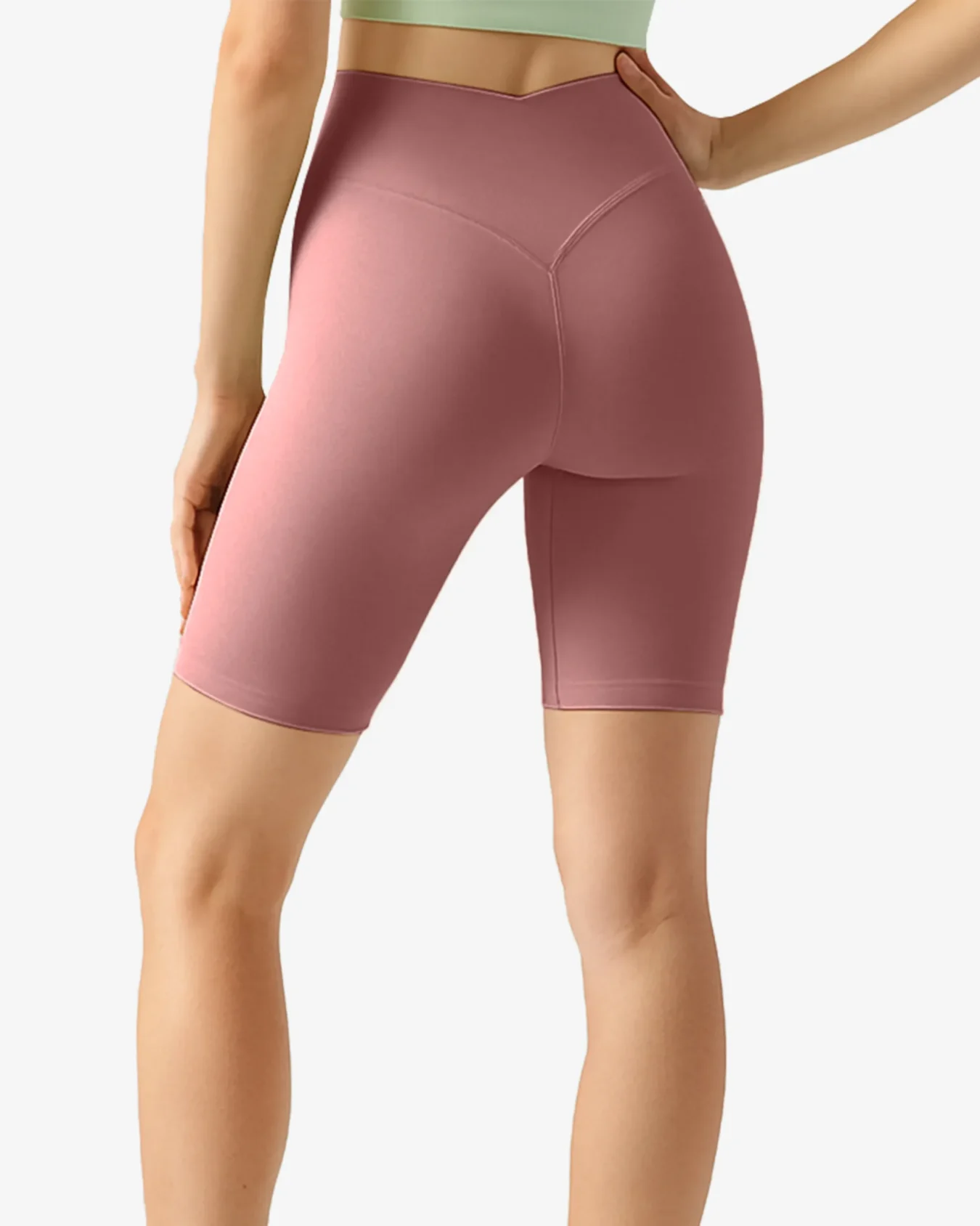 Breathable, flexible yoga shorts with a high-rise V waistband for superior comfort and performance.