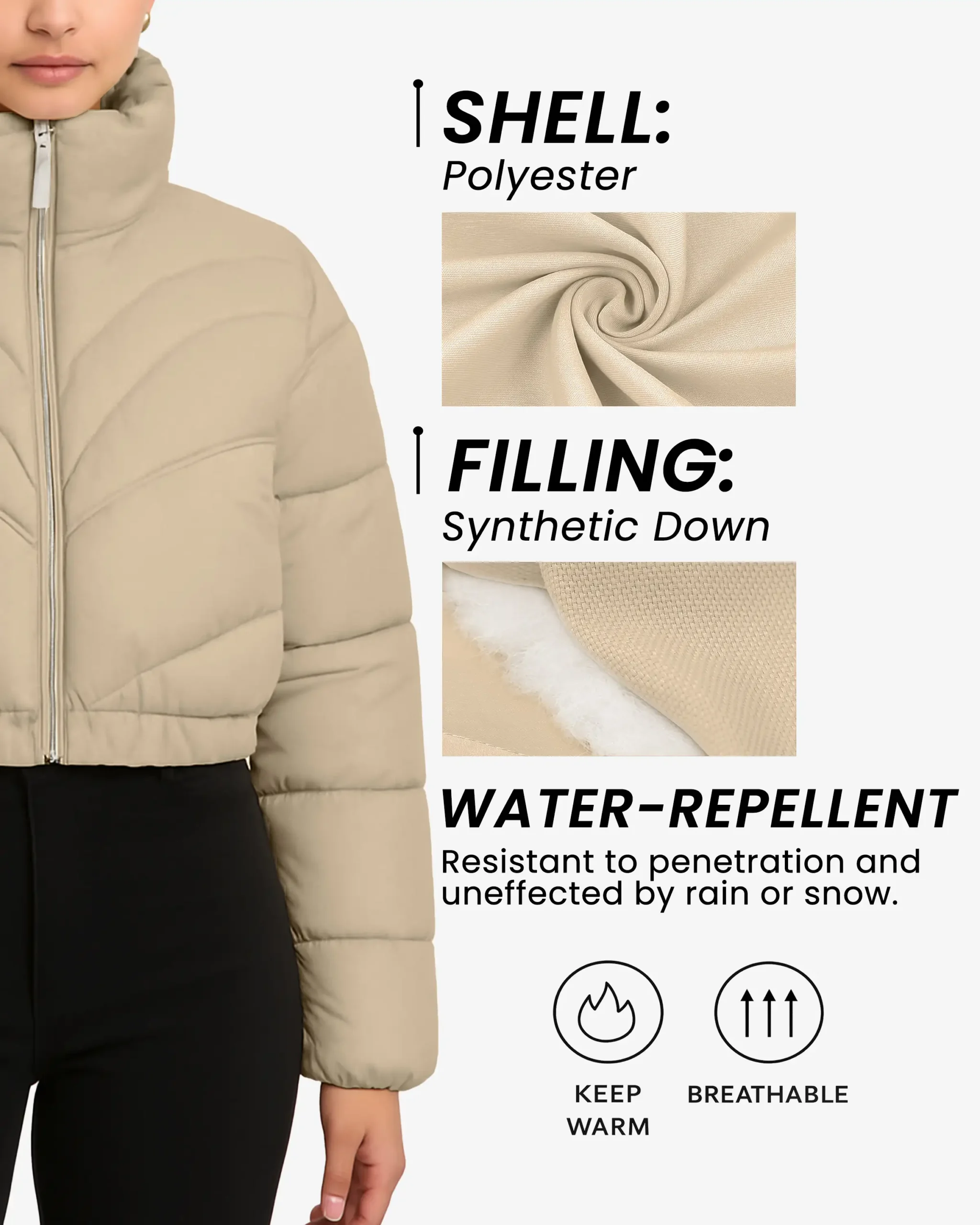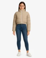 This cropped puffer jacket combines warmth with a modern, versatile style. Designed with a high collar and quilted panels, it provides excellent insulation while maintaining a lightweight feel. The cropped length gives it a trendy look, making it perfect for layering over jeans, leggings, or casual wear. Available in multiple variations, this jacket is ideal for cold-weather outings, casual wear, or travel, offering both comfort and effortless style.