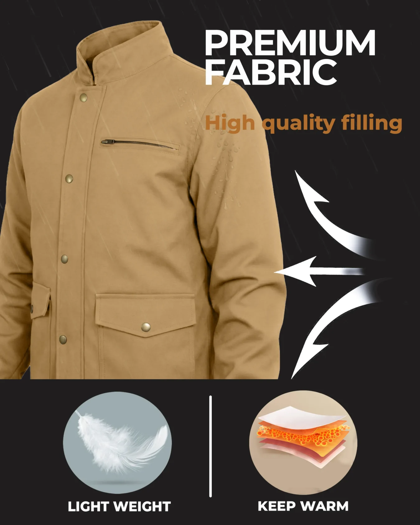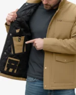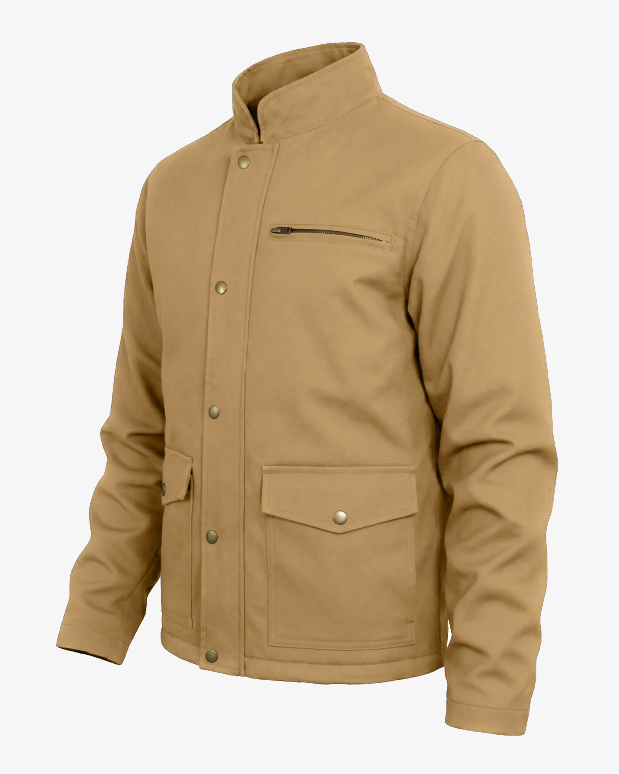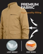 Crafted from high-quality canvas fabric in a versatile tan color, this jacket is built to withstand daily wear while maintaining a professional, non-tactical appearance. The durable outer shell provides excellent abrasion resistance and features a water-resistant finish to protect against light rain and moisture. The stand collar design adds an extra layer of protection for your neck while enhancing the jacket’s classic aesthetic.