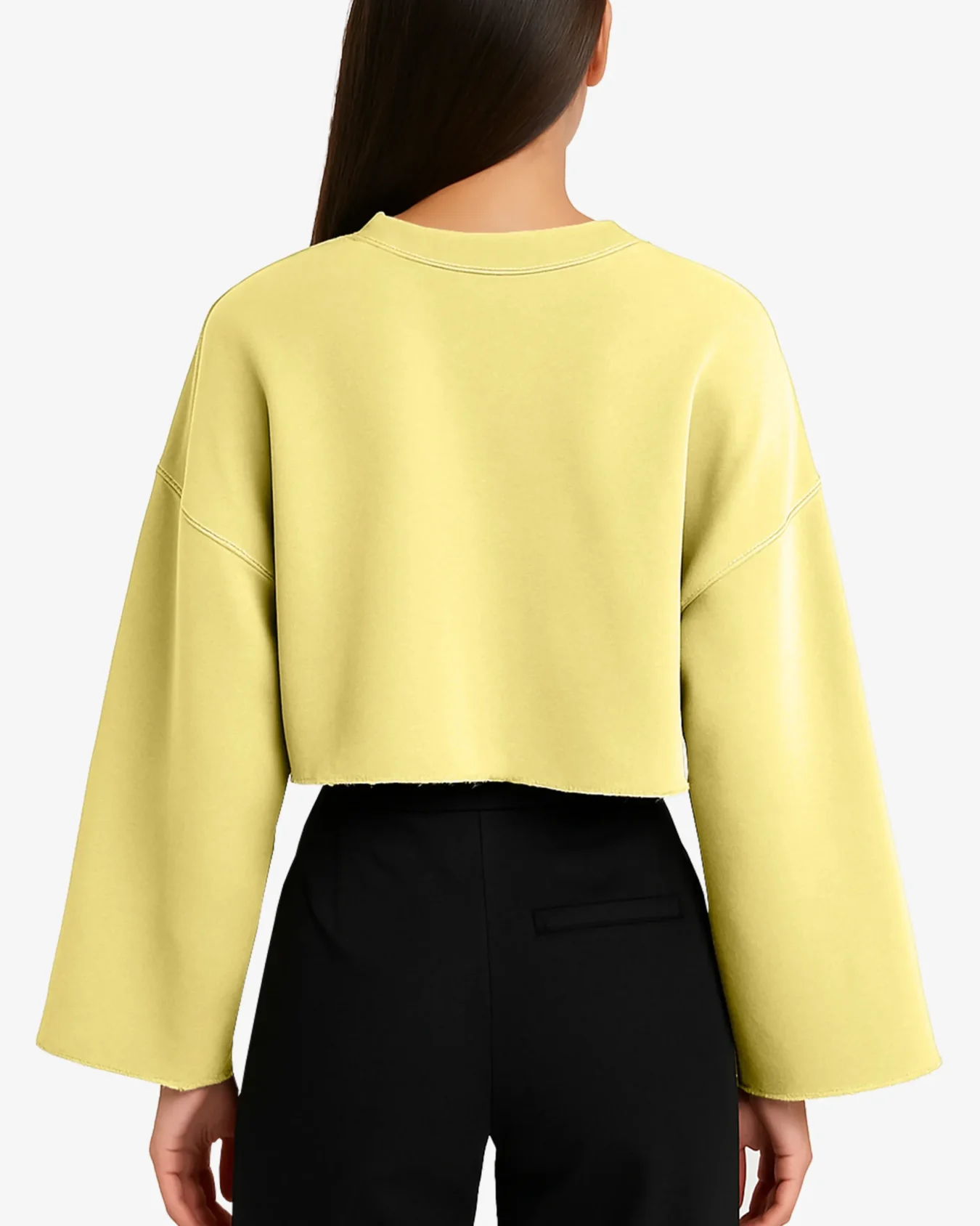 Whether you’re lounging at home, heading out with friends, or running errands, this cropped sweatshirt keeps you effortlessly stylish. The raw hem detail enhances its trendy, laid-back appeal, while the smooth pastel hue makes it a wardrobe essential for every season.