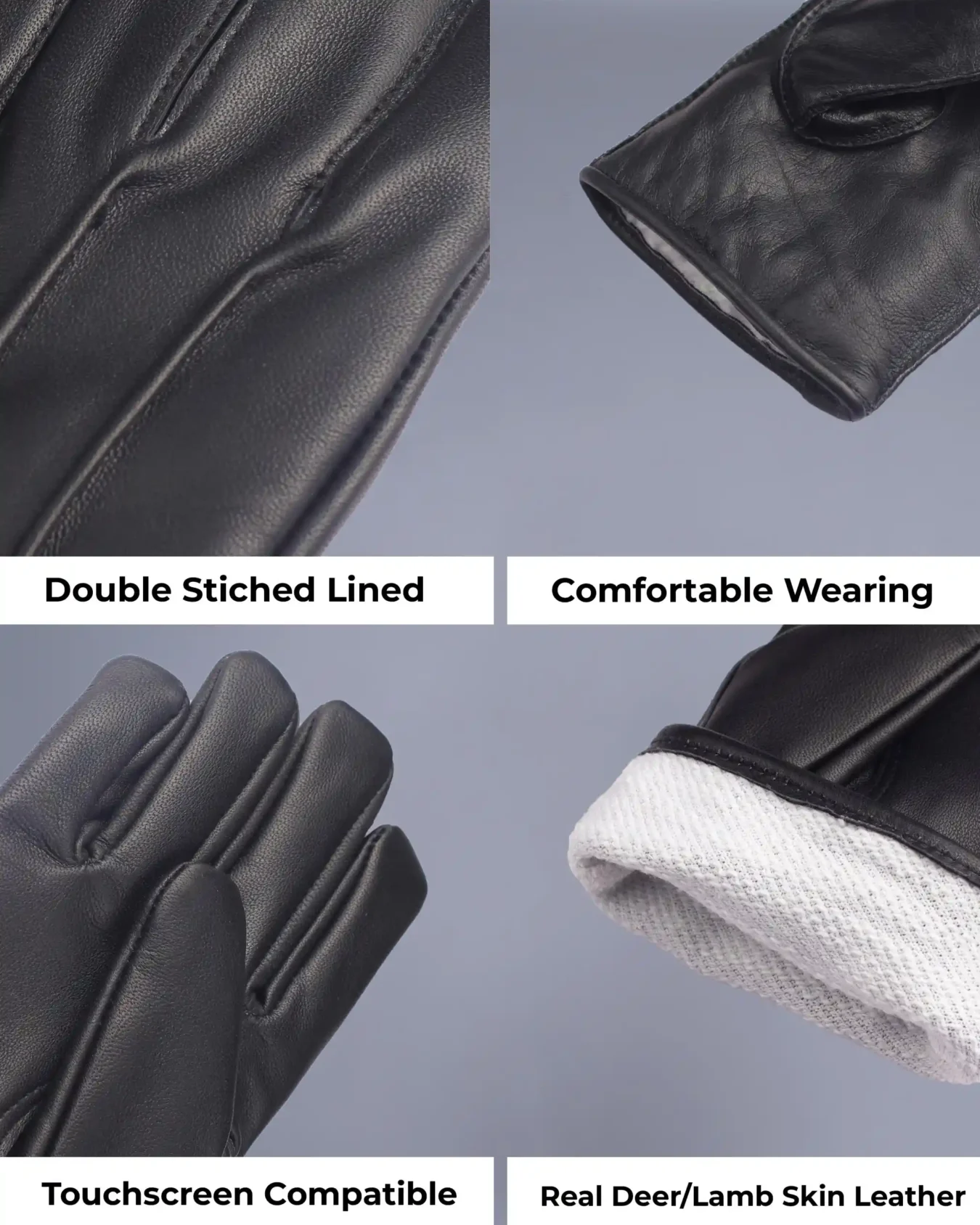 These gloves are an excellent combination of elegance and functionality. The black leather has a smooth, premium finish that looks sophisticated. The lining inside is soft and keeps my hands warm even on chilly mornings. They are flexible, allowing me to move my fingers easily. Overall, a great purchase for those looking for stylish yet practical gloves.