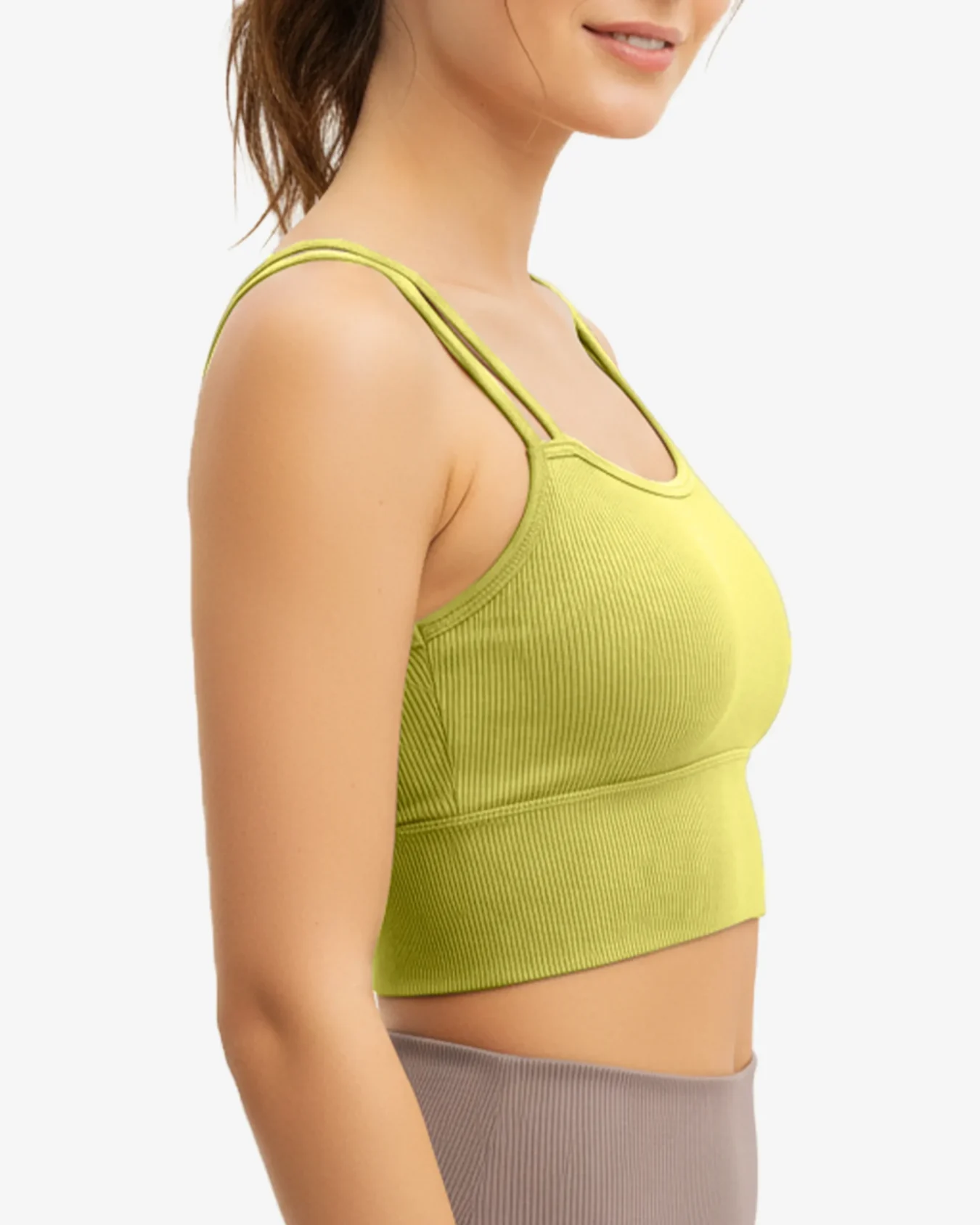 Meet the Grava Ribbed Longline Yoga Bra—made to feel like your most comfortable bra. The soft ribbed fabric moves with you, while the wide longline underband adds gentle hold without digging in. A scoop neckline and strappy racerback keep things sleek and breathable for yoga, Pilates, walks, and everyday wear. Removable pads let you customize coverage.