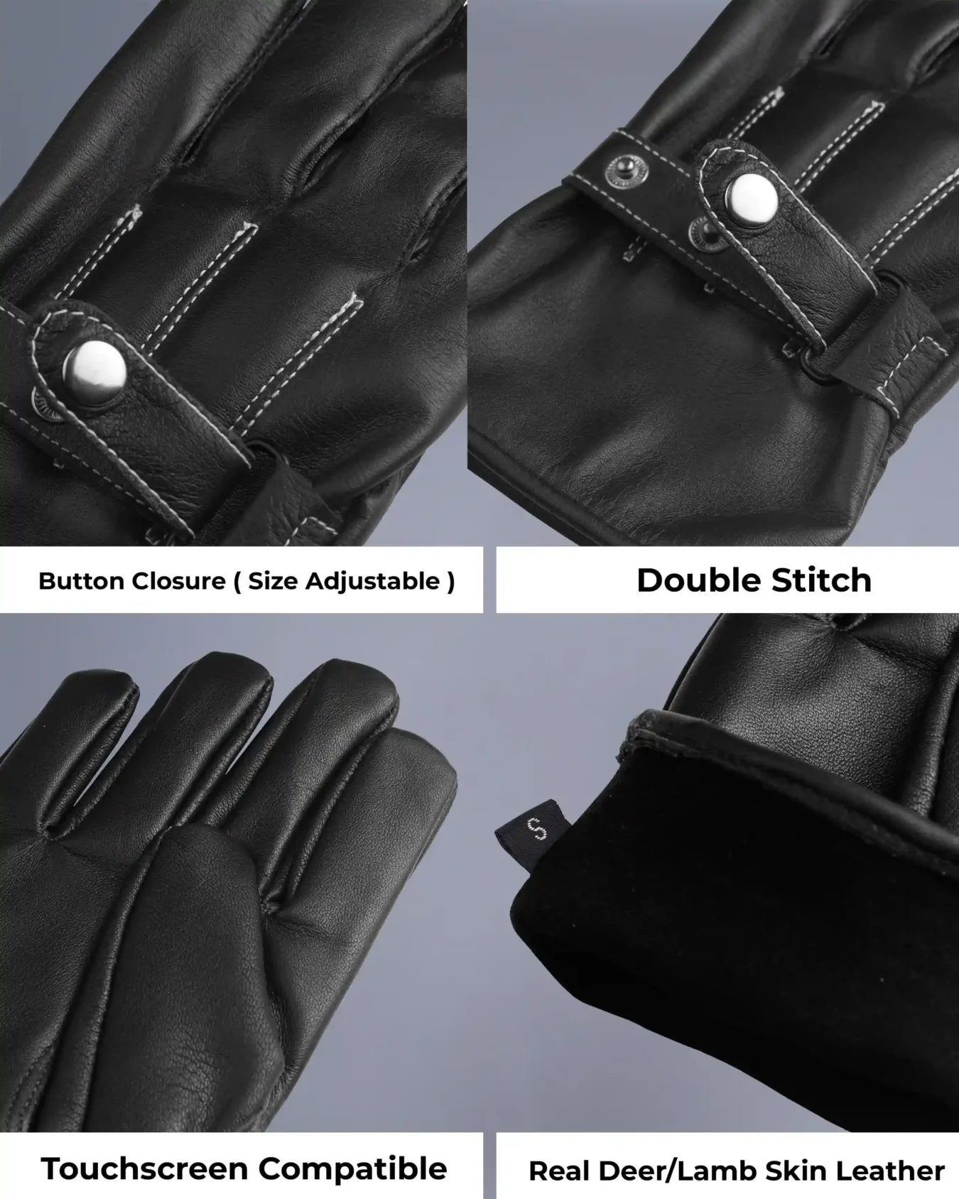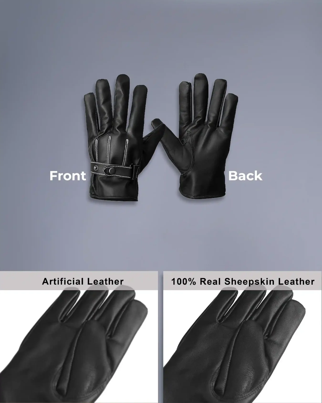These gloves have a premium feel, and the black leather with lined stitching looks extremely stylish. The interior is lined with a soft material that keeps my hands warm even in cold weather. I use them for both casual wear and riding, and they provide excellent grip without making my hands sweat. The adjustable strap is a great addition, ensuring a snug fit. Highly recommended for anyone looking for stylish yet practical gloves!