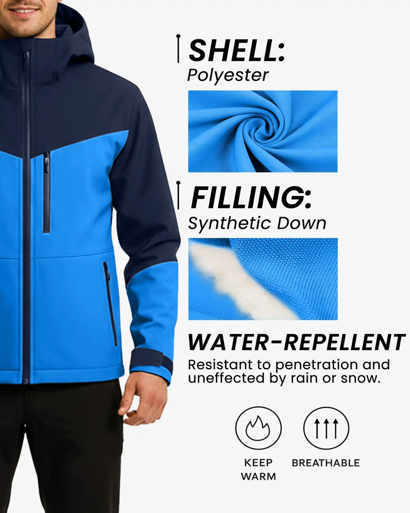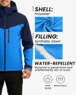 Weather Protection – Made from a durable polyester shell with water-repellent technology that resists rain and snow penetration, ensuring you stay dry in unpredictable weather conditions.