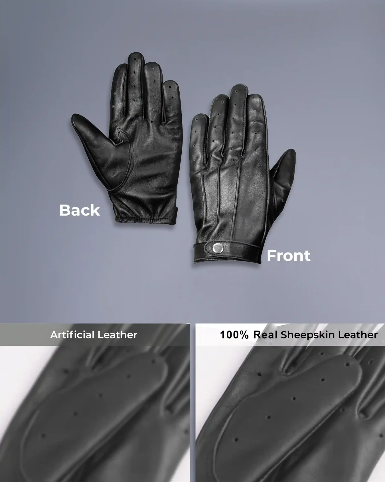 - Premium Material 100% real leather: Crafted with precision, these driving gloves are made from 100% real leather.