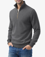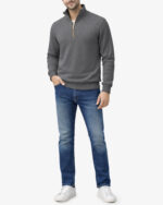 Experience refined comfort and effortless style with the NOAH mock neck zip pullover, a premium grey sweater that seamlessly blends contemporary design with exceptional functionality for the modern gentleman. This sophisticated mock neck zip pullover features a versatile grey color that effortlessly complements any wardrobe, making it an essential piece for both casual and smart-casual occasions throughout the year. Expertly crafted from premium Nantak 280 gsm 4×4 rib knit fabric, this mock neck zip pullover delivers superior warmth, durability, and luxurious texture that sets it apart from standard sweaters. The distinctive quarter-zip design adds practical versatility to this mock neck zip pullover, allowing you to adjust ventilation and styling according to your comfort needs and the weather conditions. Featuring a high-quality metal zipper with smooth operation, this mock neck zip pullover offers convenient on-and-off wear while adding a subtle touch of sophistication to the overall design aesthetic. The skin-friendly construction ensures this mock neck zip pullover is gentle on all skin types, preventing irritation during extended wear, whether you’re at the office, running errands, or enjoying outdoor activities. Designed with a classic regular fit silhouette, this NOAH mock neck zip pullover provides comfortable, true-to-size wear that flatters all body types without feeling restrictive or baggy, creating a polished appearance in any setting. The breathable 4×4 rib knit fabric technology ensures optimal air circulation throughout the day, making this mock neck zip pullover comfortable in various temperature conditions from cool autumn evenings to cold winter days. The raised mock neck collar provides extra warmth and coverage around your neck area while adding a distinguished element of style that elevates this pullover above standard crew neck designs. With ribbed detailing at the collar, cuffs, and hem, this mock neck zip pullover showcases superior craftsmanship and attention to detail that ensures long-lasting durability and shape retention even after multiple washes.