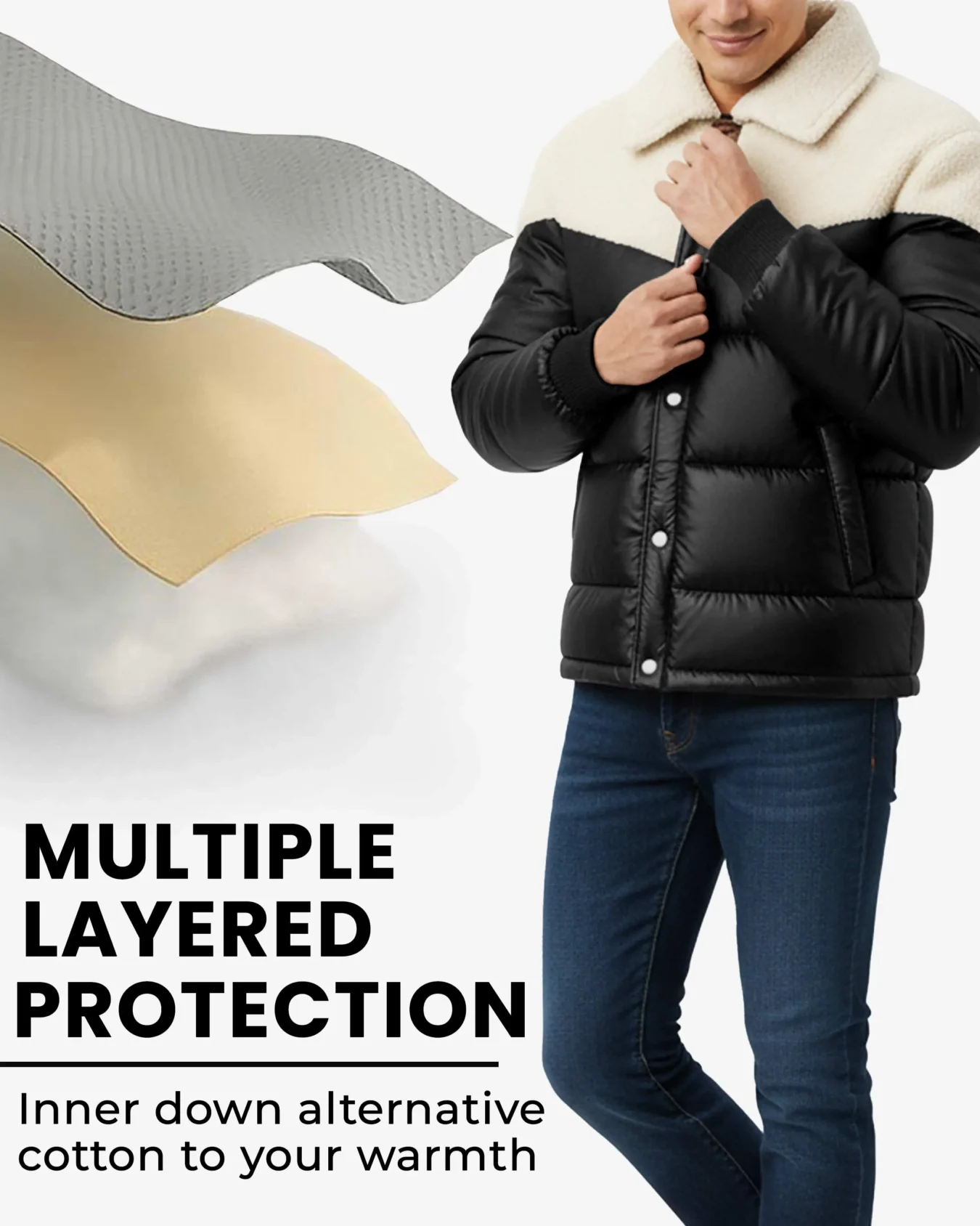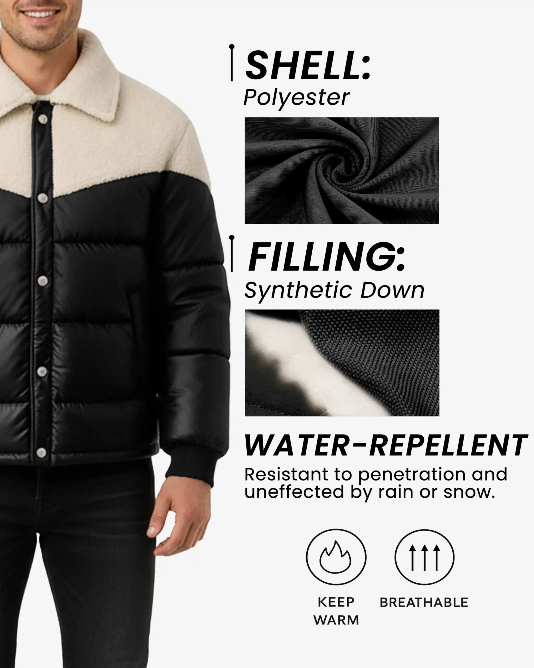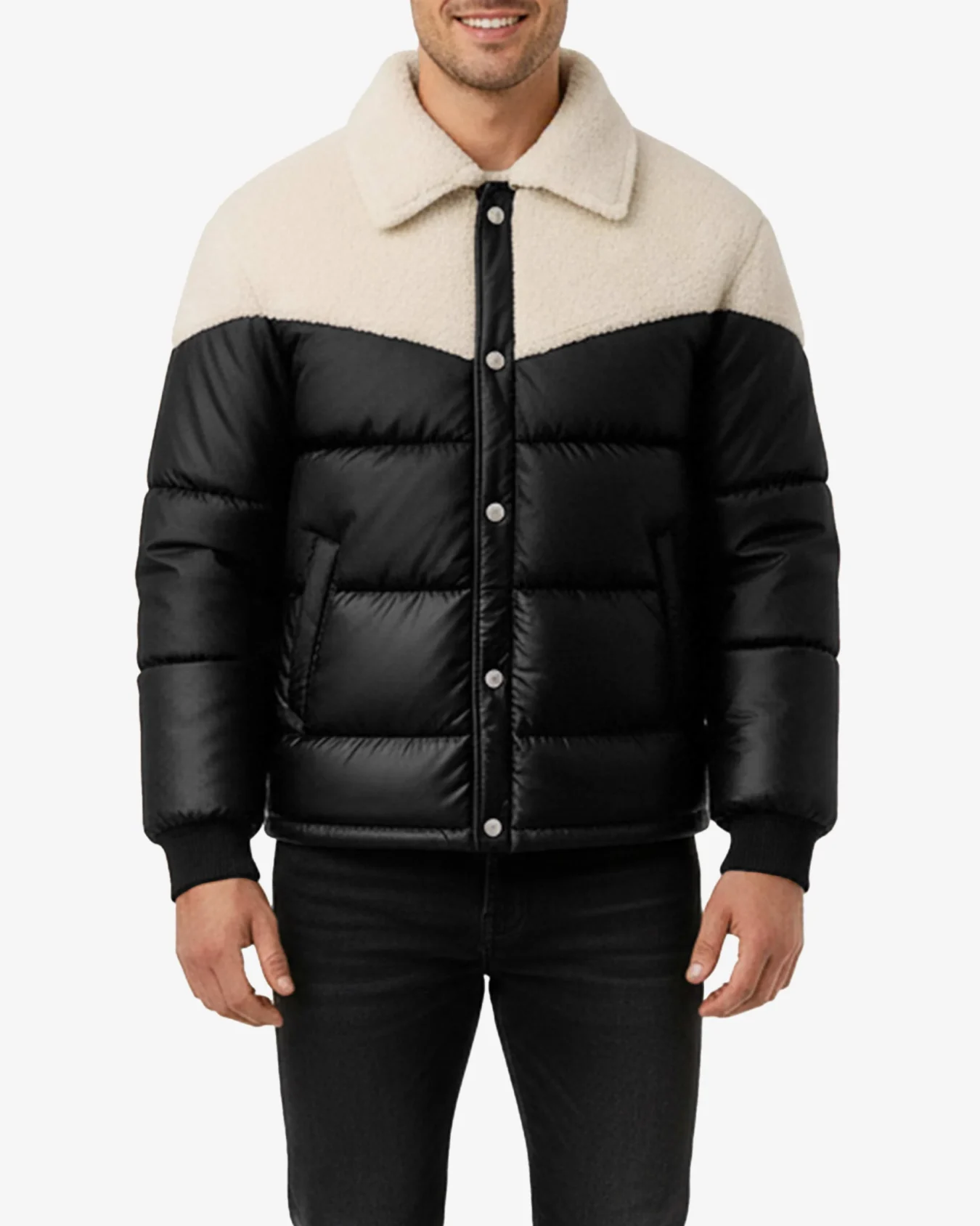 Premium Sherpa Collar – The plush fleece collar provides superior neck warmth and adds a sophisticated, retro-inspired touch to the classic puffer design.