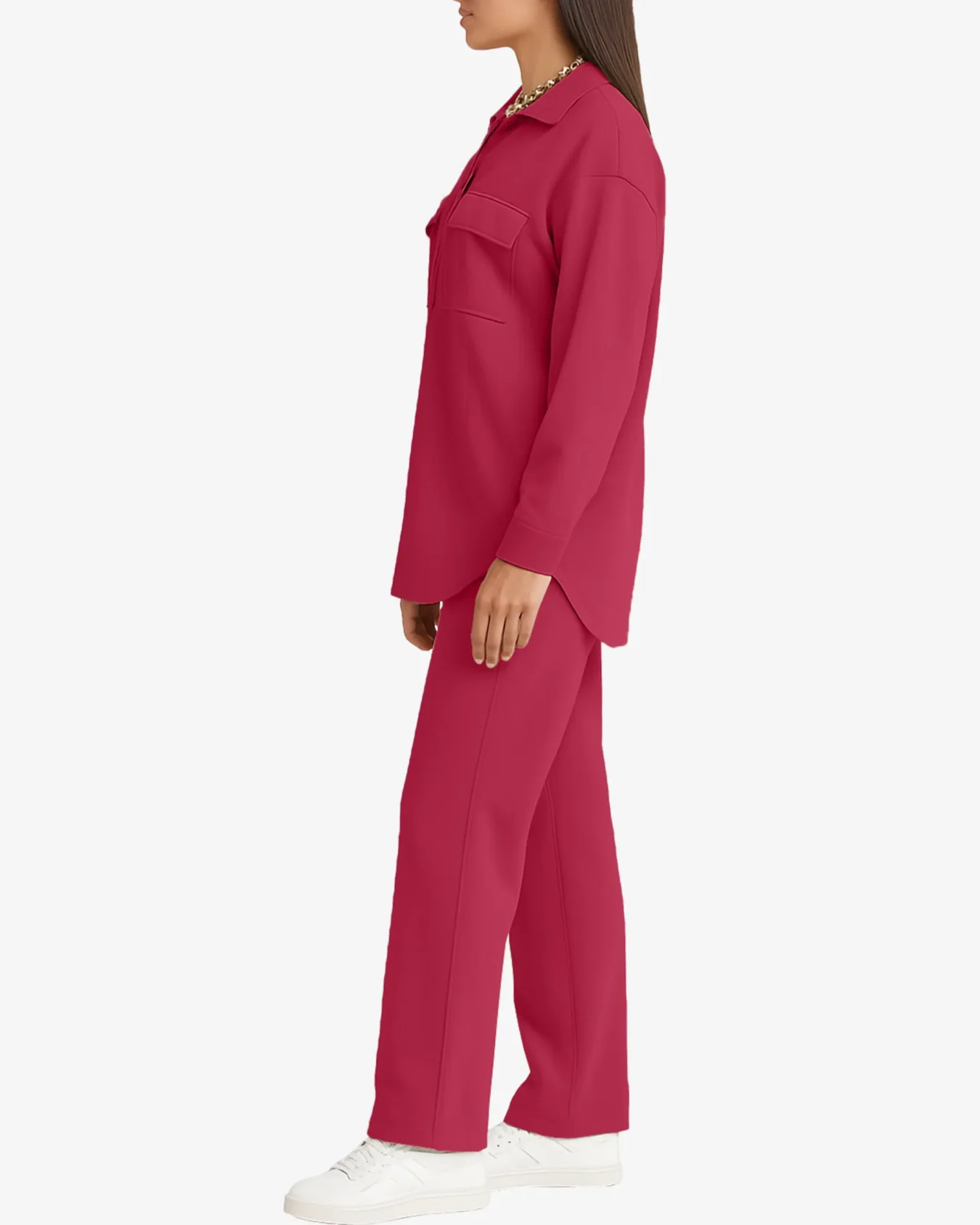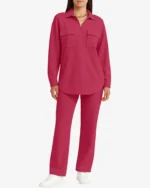 The Poppy Women’s Zip Front Top Set redefines casual luxury with its sleek, coordinated design. Crafted from soft, breathable fabric, it provides a flattering drape and smooth feel against the skin. The zip-front top, featuring functional chest pockets and a polished collar, pairs perfectly with the relaxed-fit pants for a timeless yet contemporary look.