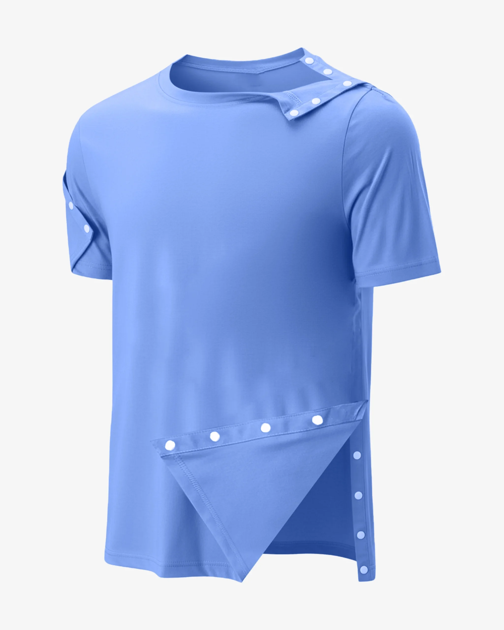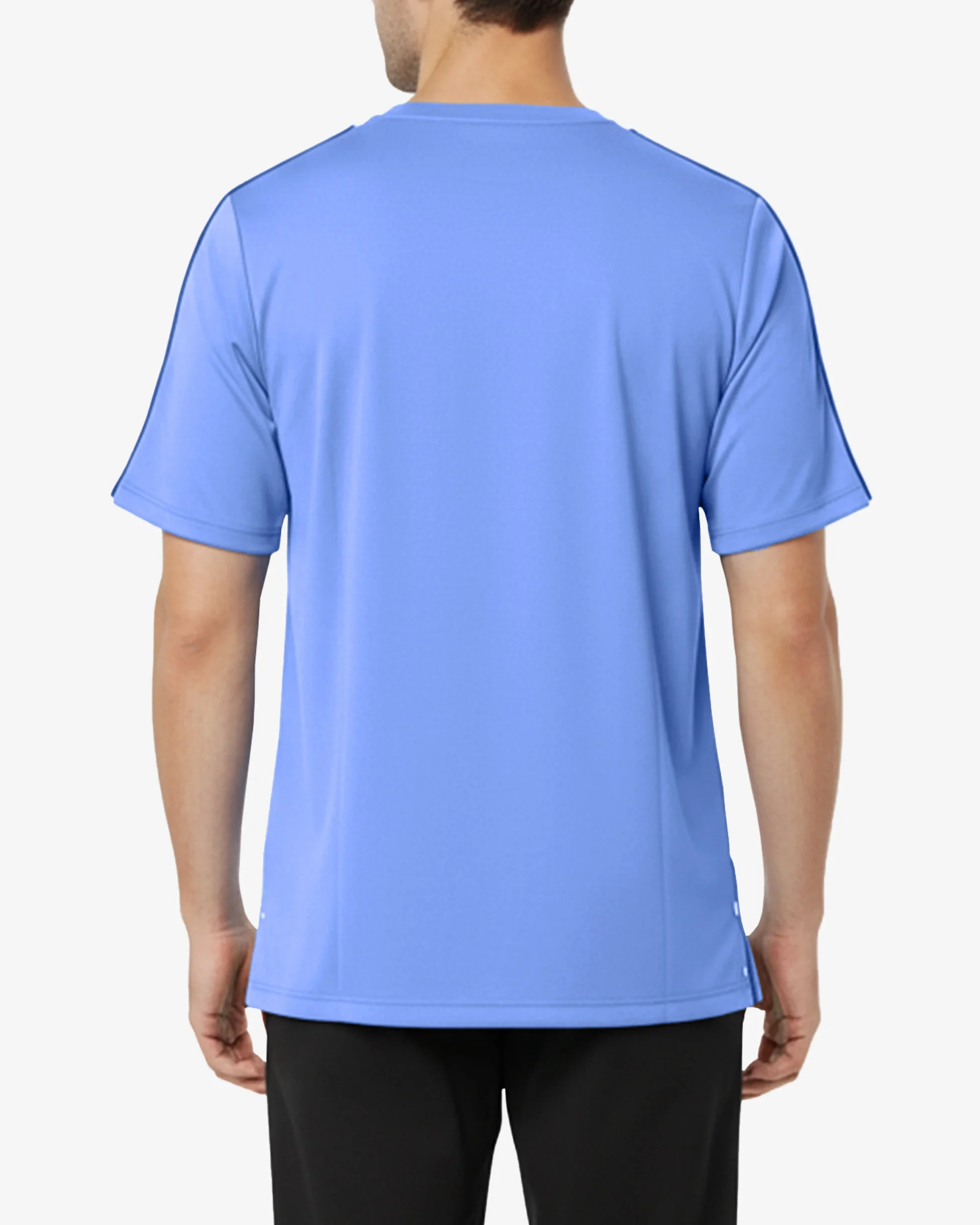 Discover exceptional comfort and professional functionality with Rise men’s surgical shirts, expertly designed to meet the demanding needs of healthcare professionals, medical practitioners, and surgical staff who require reliable, high-performance workwear throughout their intensive shifts. These premium men’s surgical shirts feature a fresh sky blue color that represents cleanliness, professionalism, and medical expertise while maintaining a calming, approachable appearance that patients and colleagues appreciate in healthcare settings. Crafted from superior medical-grade fabric, these men’s surgical shirts deliver outstanding breathability, durability, and comfort that withstands the rigors of long hospital shifts, surgical procedures, and demanding clinical environments without compromising on quality or performance. The innovative snap button closure system featured on these Rise men’s surgical shirts provides quick, convenient dressing and undressing capabilities, essential for medical professionals who need to change efficiently between procedures or shifts while maintaining proper hygiene protocols. Featuring strategically placed white snap buttons along the shoulder and side seams, these men’s surgical shirts offer easy access for dressing assistance and accommodate medical monitoring equipment, IV lines, and other clinical devices without requiring complete garment removal. Designed with a practical crew neck style, these men’s surgical shirts provide comfortable coverage without restricting neck movement or interfering with surgical masks, stethoscopes, ID badges, and other essential medical accessories worn throughout the workday. The short-sleeve design of these men’s surgical shirts ensures optimal mobility for clinical procedures, examinations, and patient care activities while maintaining professional appearance standards required in healthcare facilities and medical institutions.