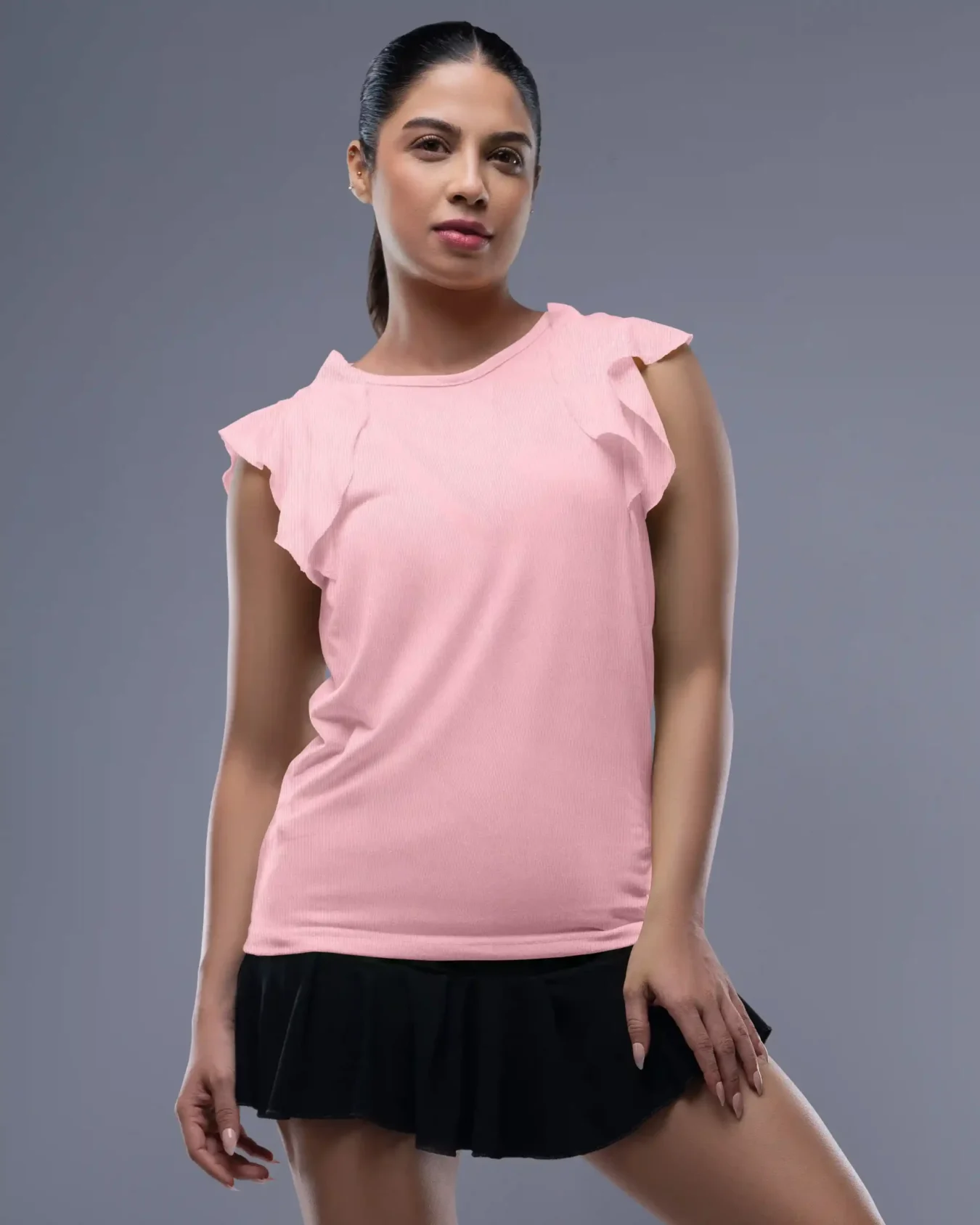 Great for warm weather. The top is breathable, and the ruffles add a stylish touch. Very satisfied with the quality.