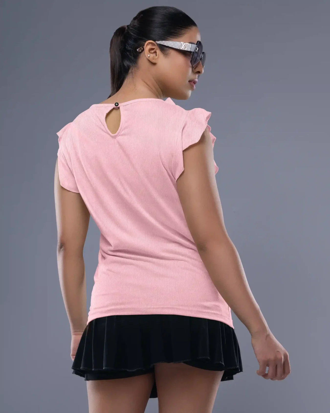 The design of this top is gorgeous. The ruffles are well-placed, and the fit is just right. Perfect for a chic look.