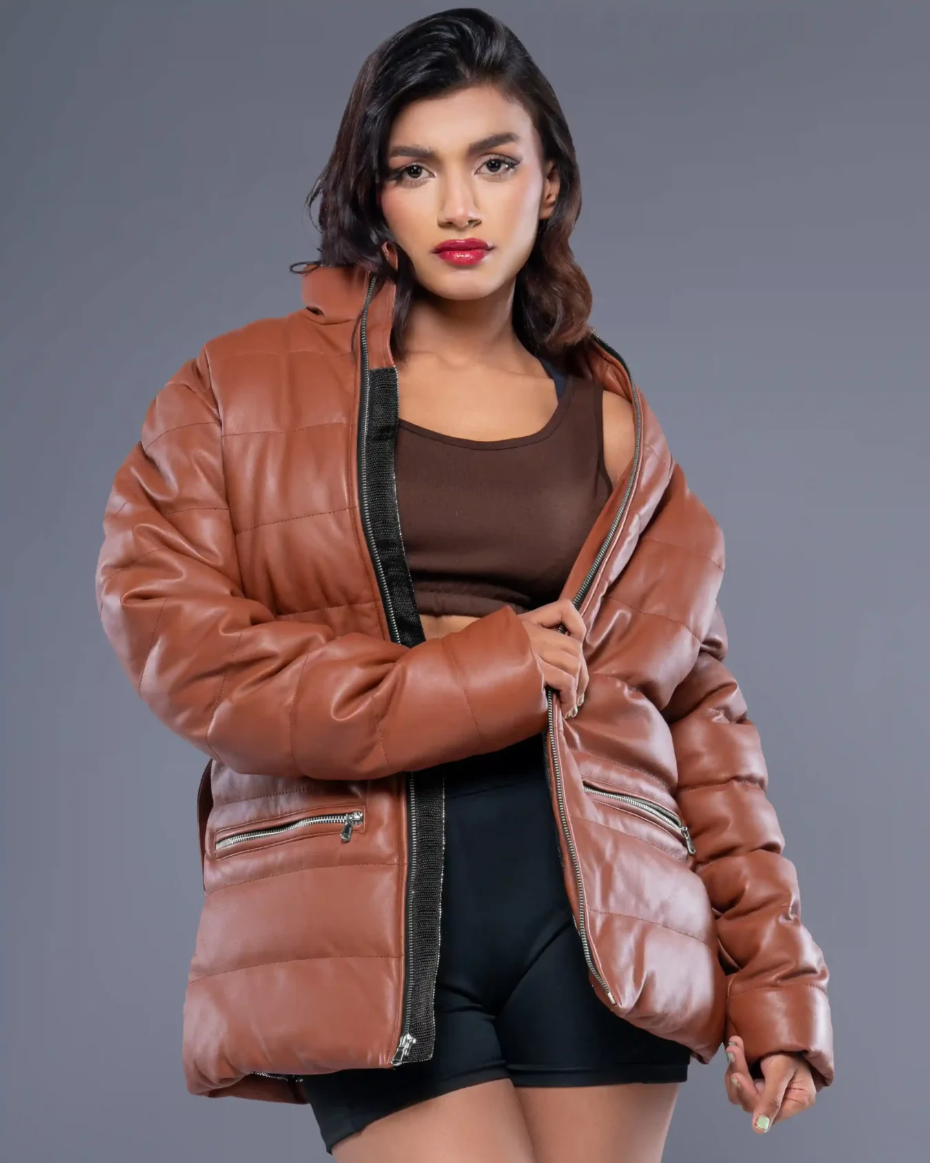 The cognac jacket looks so chic. It’s the perfect addition to my winter wardrobe. The material and design are amazing.