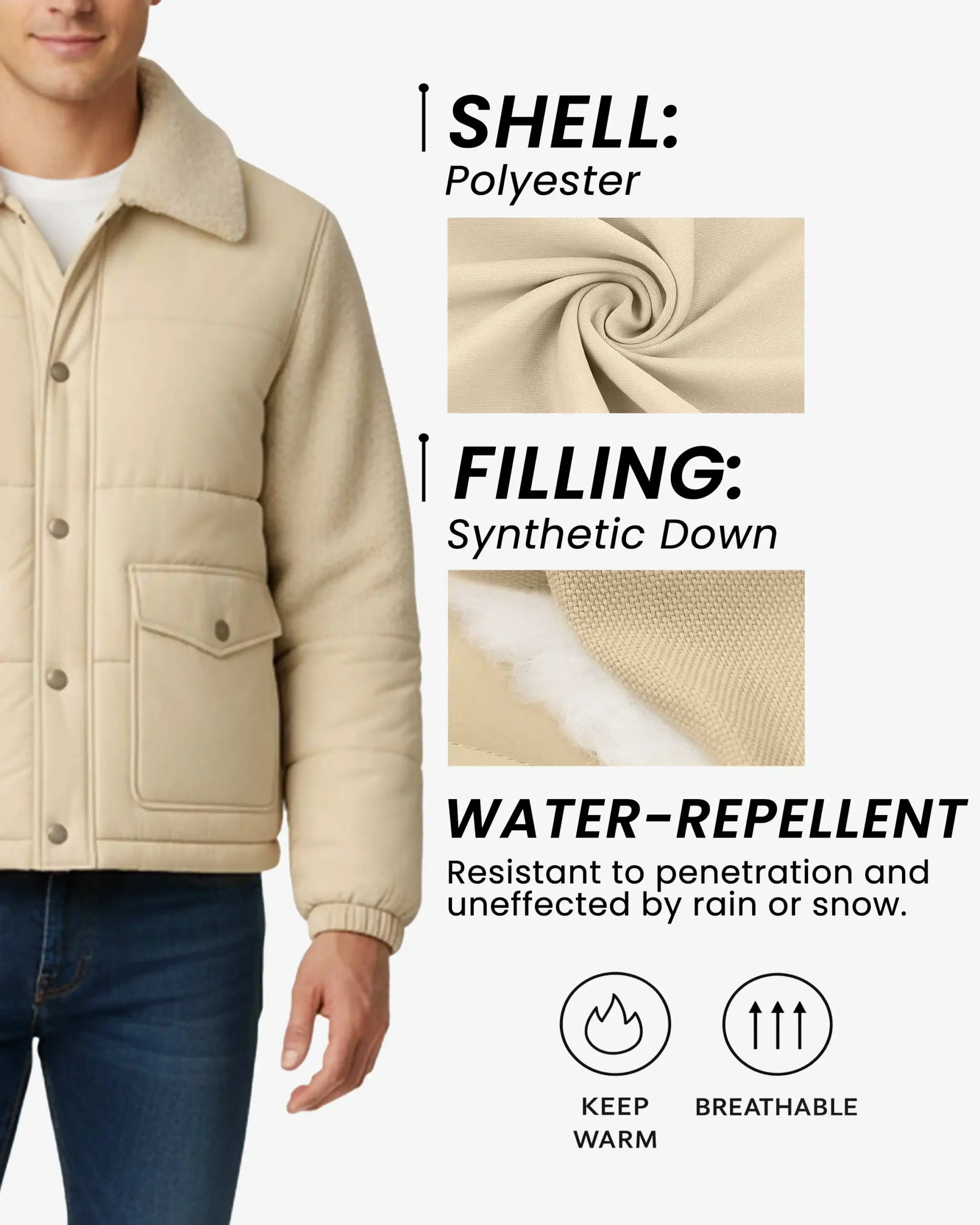 Casual winter outings, daily commutes, weekend adventures, or layering over your favorite hoodie. The neutral beige color pairs effortlessly with jeans, chinos, or joggers.