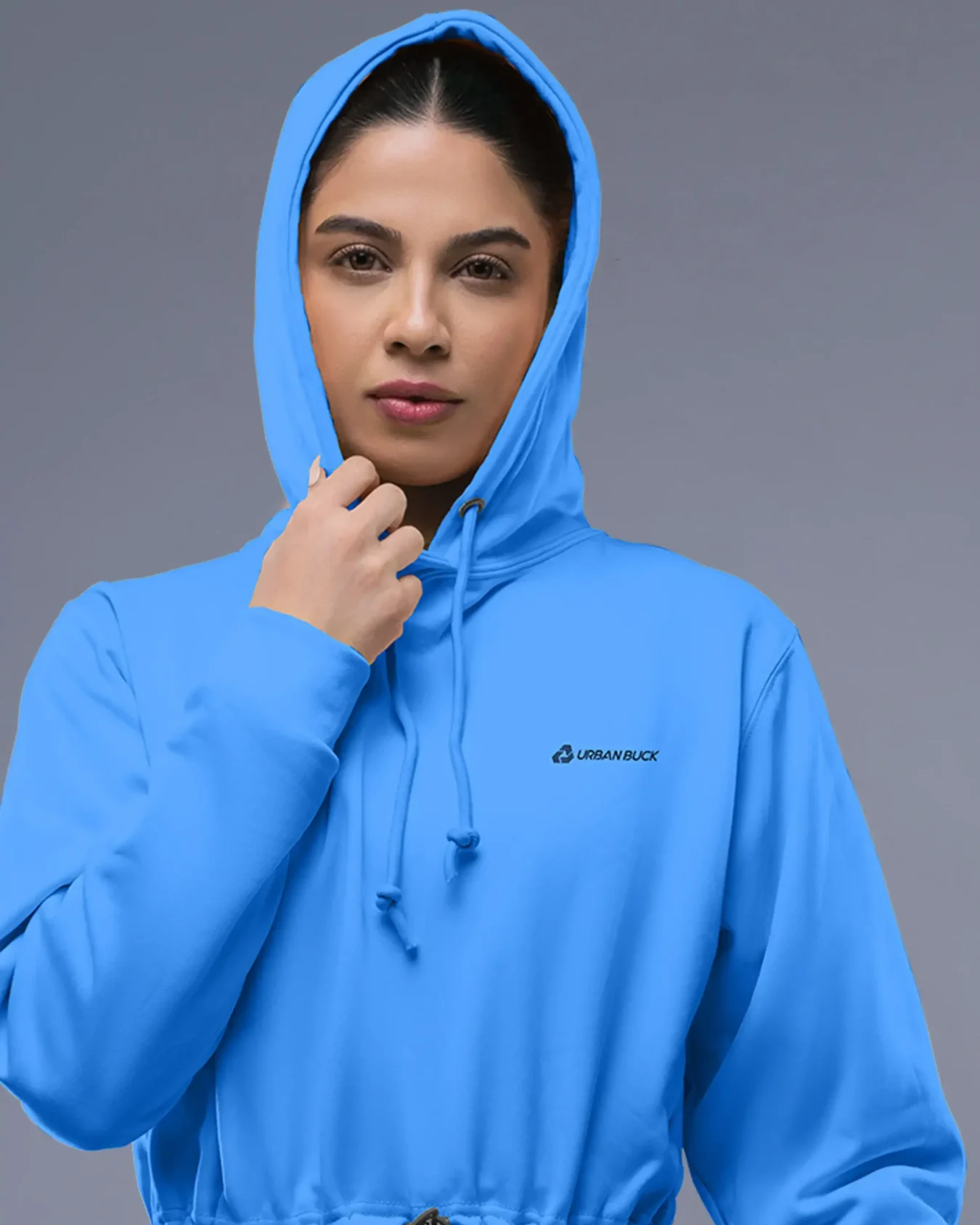 The quality and design of this hoodie are great. It’s well-made, and the crop style with the drawstring is very fashionable.