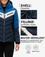 Superior Insulation – Filled with high-quality synthetic down alternative that delivers an exceptional warmth-to-weight ratio, perfect for cold winter conditions. The insulation is strategically distributed throughout chevron-quilted channels, ensuring consistent warmth across your entire torso and arms while maintaining mobility and flexibility essential for active winter sports and outdoor activities.
