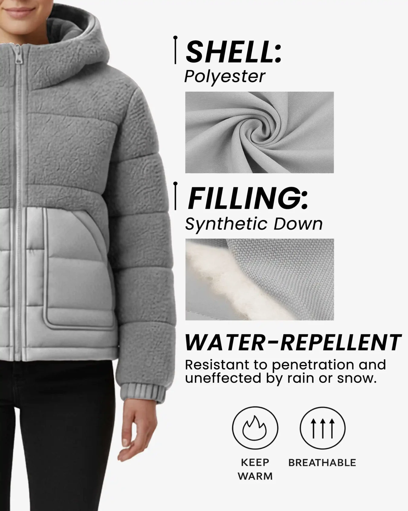 • Synthetic Down Insulation – Lightweight Filling Provides Warmth Without Bulk