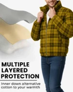 Make a bold statement this winter with the Wood Plaid Checkered Winter Puffer for Men. This eye-catching jacket combines classic plaid styling with modern puffer technology, creating a piece that’s equal parts fashion-forward and functional for cold weather.