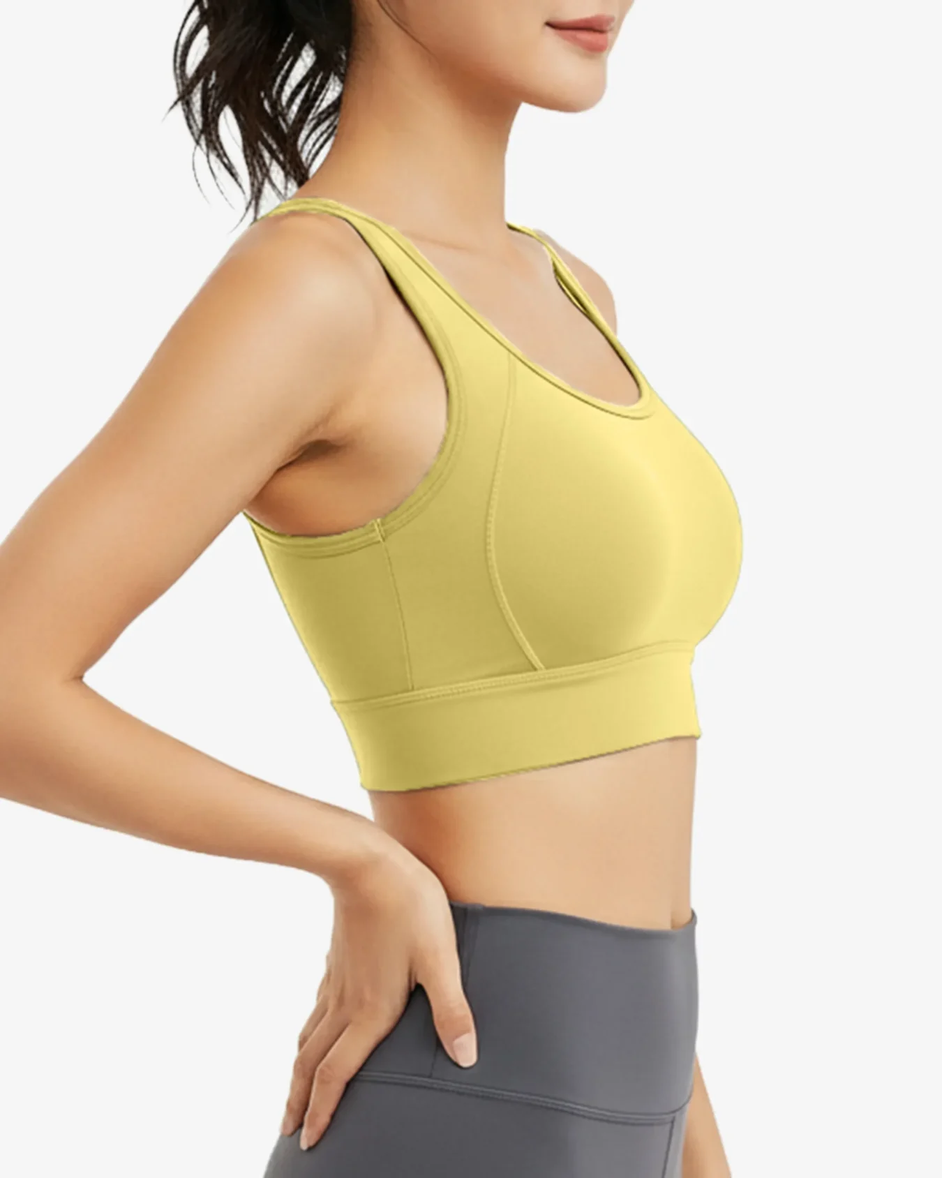 Find balanced comfort in the Xalia Scoop-Neck Yoga Sports Bra. Designed for studio flow and daily movement, it features a supportive longline underband, wide straps that stay put, and a smooth scoop neckline and back for a clean, minimal look. The breathable, sweat-wicking fabric moves with you, while removable pads let you customize coverage.