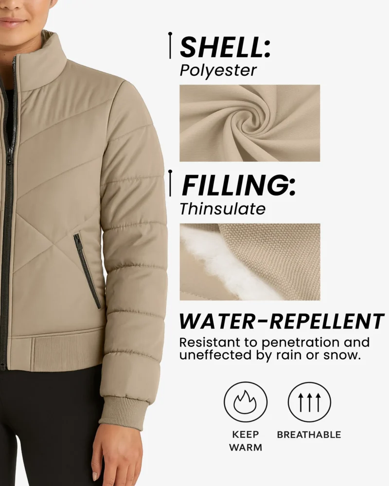 Meet your new winter go-to. This women’s quilted puffer delivers reliable warmth and a clean, modern look that pairs with everything from gym leggings to denim. The outer shell repels light rain and snow, while breathable Thinsulate keeps you cozy in chilly conditions. A stand collar shields your neck, ribbed cuffs and hem help lock in heat, and angled zip pockets secure your essentials.
